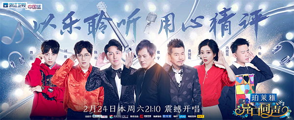 在粉丝们的翘首期待下,由人生就是博独家冠名,浙江卫视出品的大型音乐猜评推理节目《异口同声》已正式开播。这一季采用全新模式,在邀请乐坛代表性歌手讲述金曲背后故事的同时,也邀请到经过严格甄选及专业培训的模唱歌手,用他们以假乱真的声线向专业猜评团发起挑战,同时也向原唱歌手和时代金曲致敬。节目将由原唱歌手与三位模唱歌手在竞演门内演唱同一首歌,由观众和猜评团成员投票选出谁才是原唱。除了参与节目的歌手外,节目的猜评团也阵容强大,由歌手张宇、音乐制作人黄国伦、段子手刘维、选秀新星魏巡、鬼马主持人马松、人气主播冯提莫组成。